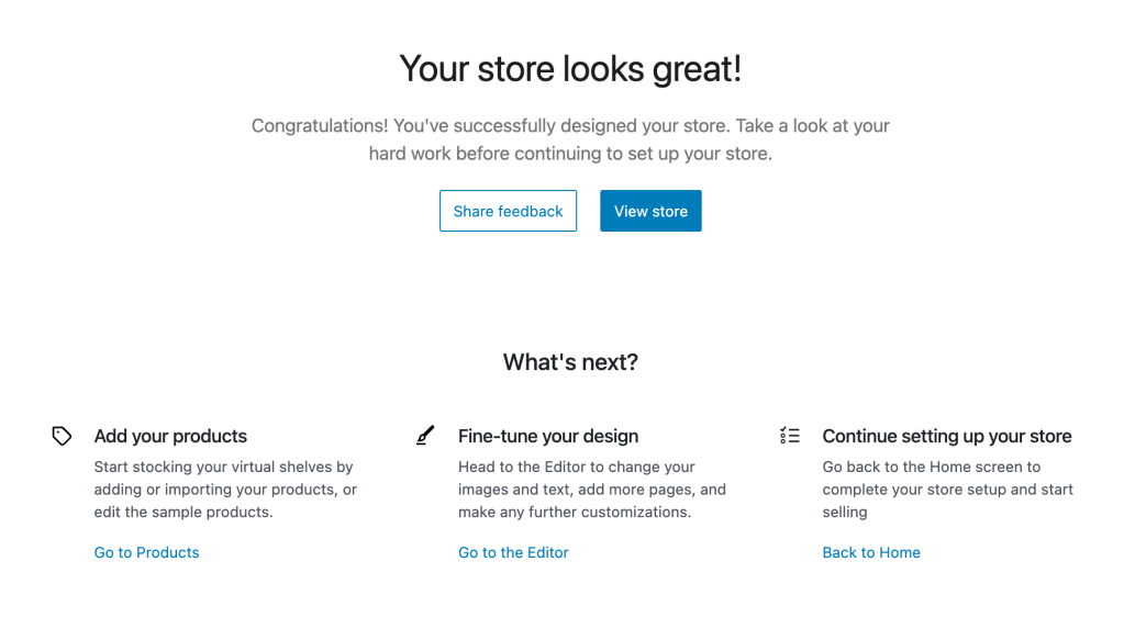 - Updated the Actions section with a new “Add your products” item to create a better connection with product editing.