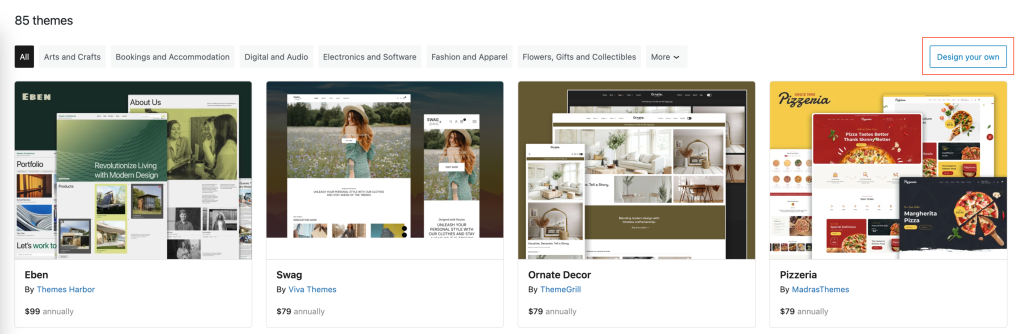 - Add the line Didn’t find a theme you like? Browse the WordPress.org theme directory to discover more. The link sends the user to Appearance -> Themes -> Add new Theme with e-commerce as a search term.